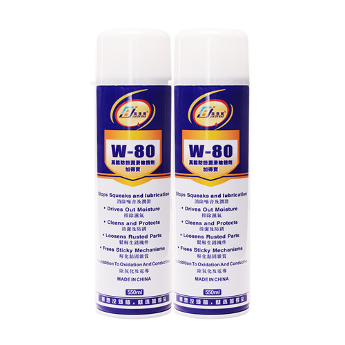 W-80防銹潤滑除銹劑(550ML)品牌:加得寶防銹、解銹、潤滑、除濕、清潔、抗氧化劑適用于軍工、模具、汽車配件、自行賽車、沖壓機床、縫紉機、跑步機,門鎖五金配件等所有金屬或其它金屬零部件的潤滑,抗銹、清潔、除濕及去除嚴重積銹,松脫卡死的零件、螺栓等。車輛、家庭日用品、工廠機械的維護保養。